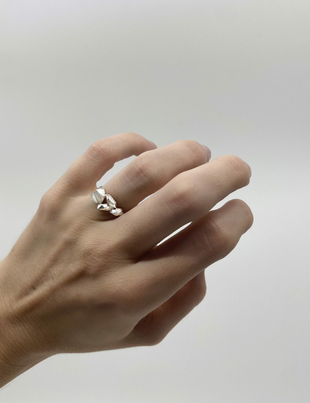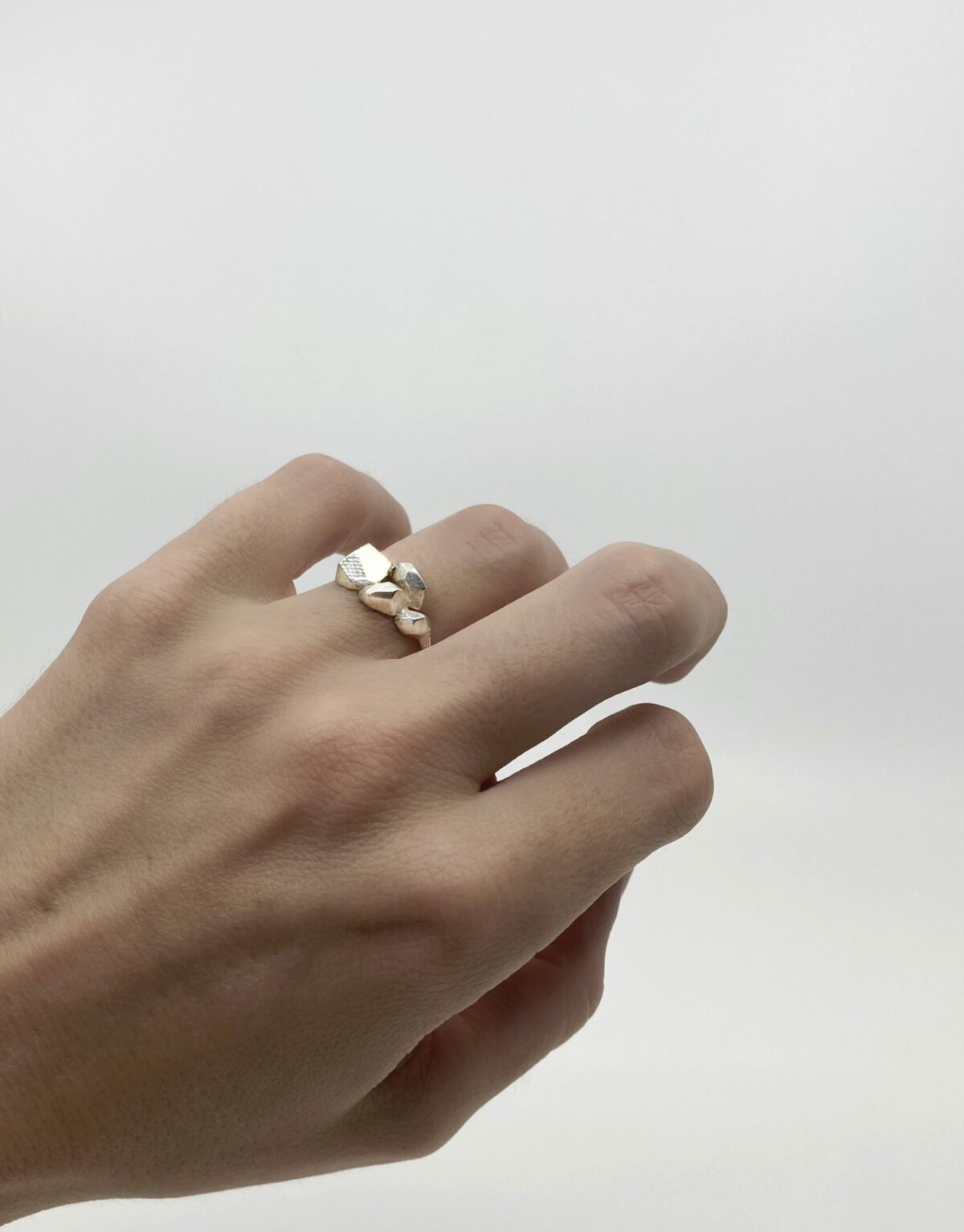 Bague sculptée de 4 caillasses d’argent.