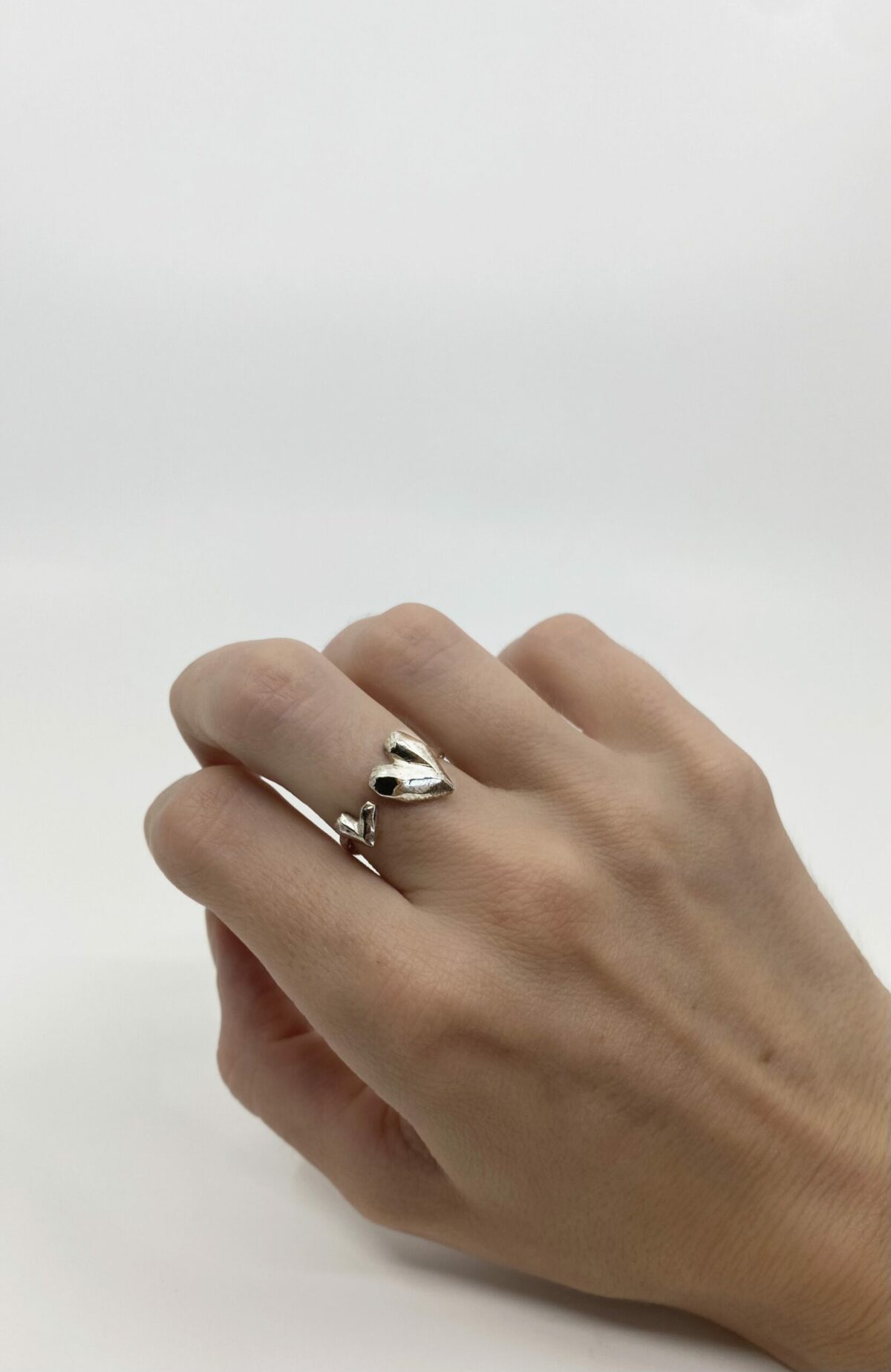 Bague ouverte, sculptée de deux cœurs